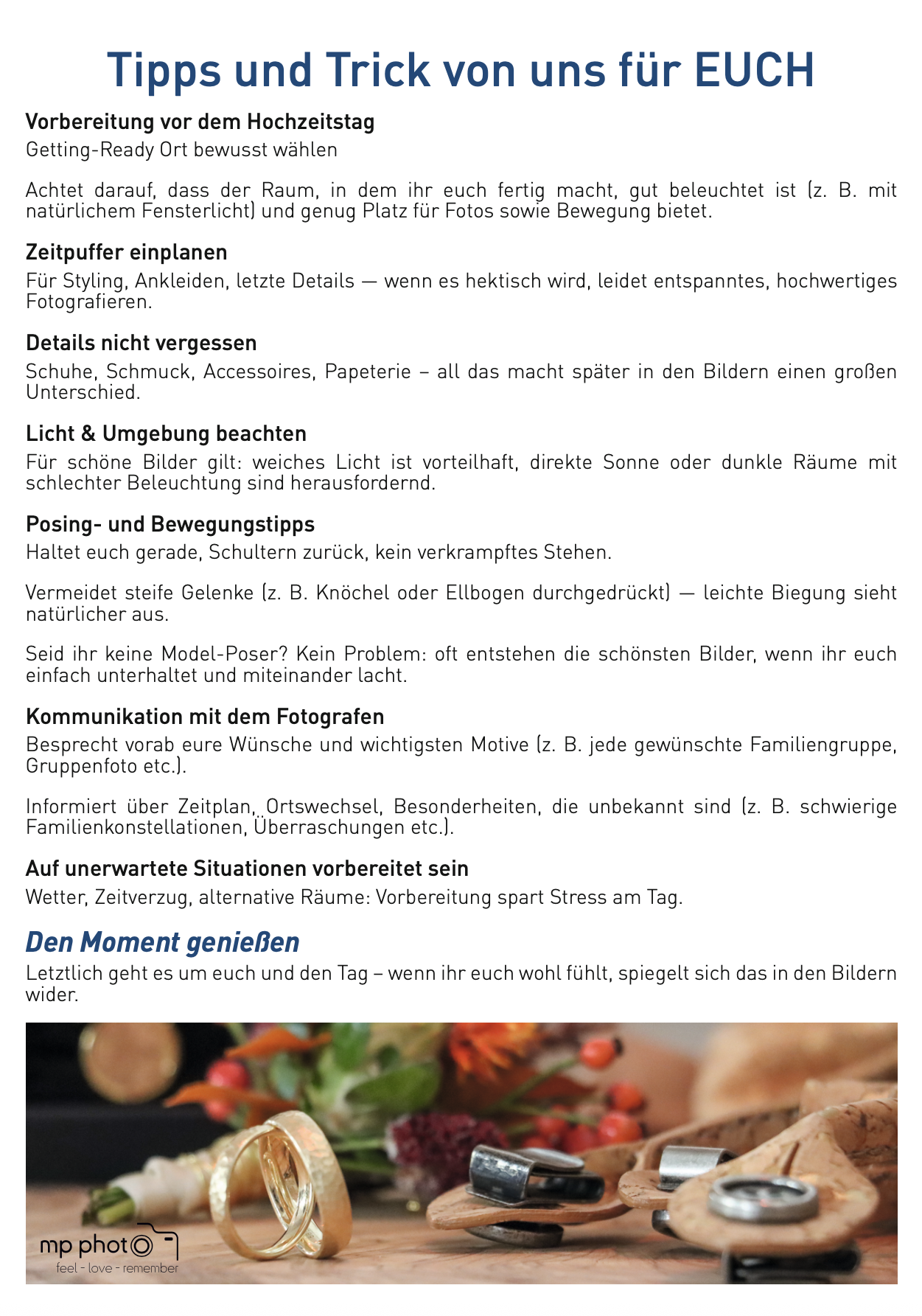 Tipps und Tricks für jede Art von Foto-Shooting. Wir haben hier für euch eine kleine Zusammenfassung erstellt.